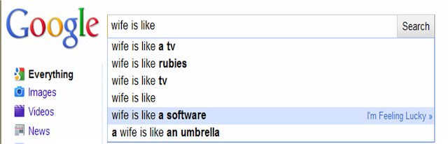 "Wife is like"....google is living in a world of hardwares and softwares. So it told me "Wife is like a software" and the poet in google also compared wife to "an umbrella"